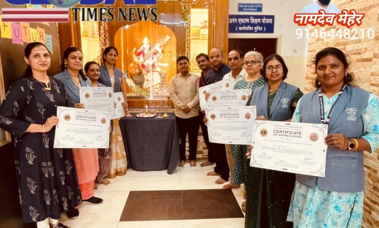 लायन्सतर्फे मॉडर्न इंग्रजी माध्यमाच्या शिक्षकांचा सन्मान.