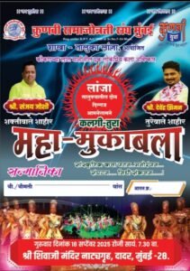 • प्रतिनिधी : लांजा : प्रमोद तरळ :- कुणबी समाजोन्नती संघ मुंबई शाखा तालुका लांजा यांच्या वतीने दि.१८ सप्टें बर २०२५ रोजी रात्री ७.३० वाजता छत्रपती शिवाजी म हाराज नाट्यमंदिर दादर येथे शक्तीवाले शाहीर संजय जो शी विरुद्ध तुरेवाले शाहीर देवेंद्र झिमन या दोन तुल्यबळ प्रतिस्पर्धी शाहीरांमध्ये महा – मुकाबला रंगणार आहे.