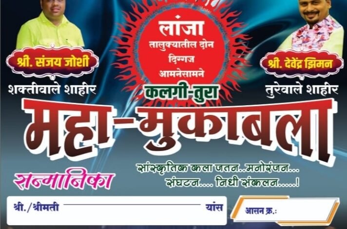 • हे दोन्ही शाहीर लांजा तालुक्यातील असून पारंपरिक क लेचा वारसा पुढे नेणाऱ्या या अद्वितीय कलगी-तुरा साम न्याला रसिक प्रेक्षकांनी उपस्थित राहून कोकणच्या या कलेचा आस्वाद घ्यावा असे आवाहन कुणबी समाजोन्नती संघ मुंबई शाखा तालुका लांजा यांच्या वतीने करण्यात आले आहे.
