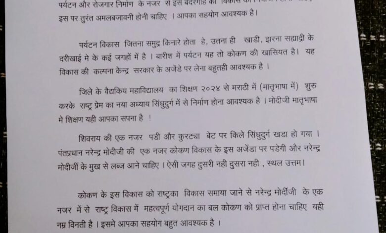- मोदीजी यांनी त्वरित कोकण रेल्वे भारतीय रेल्वेत विलि नीकर करण्यासाठी संबंधित रेल्वे मंत्री,अधिकारी, राज्य सरकार यांच्याशी चर्चा करून कोकण रेल्वे भारतीय रेल्वे त विलिनीकर करावे अशी विनंती केली आहे.