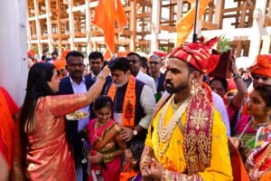 जपान दौऱ्यावर आलेल्या पालकमंत्री श्री.उदय सामंत यांचे कोंडगे गावच्या सुनबाई सौ.गायत्री कदम यांनी केले औक्षण.