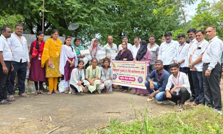 रा.गे.शिंदे महाविद्यालयाचा पूरग्रस्त गावाला मदतीचा हात.