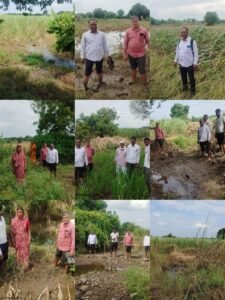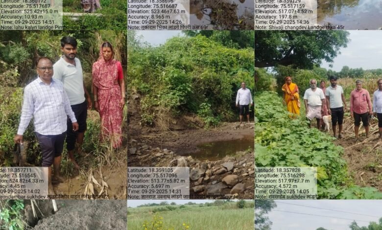 - वाहून गेलेले पिके सोयाबीन कांदा तुर मका विर वाहून गे लेले दरूभाई देवी मंदिर पडझड. खरडून गेलेली क्षेत्र.तला ठी भाऊसाहेब गुडघ्या एवढ्या चिखलात जाऊन प्रत्यक्ष पाहणी करून पंचनामा करत आहेत. वाघमारे तलाठी भाऊसाहेब यांचे कौतुक होत आहे.