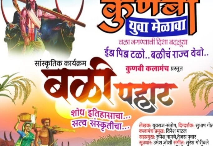 - कुणबी युवा मुंबई आयोजित कुणबी कलामंच प्रस्तुत शेत करी कष्टकरी वर्गाची “बळी पहाट” शोध इतिहासाच, सत्य संस्कृतीचा एक प्रबोधनात्मक नाट्यकृती “निर्णय तुमच्या हाती चला – जगण्याची दिशा बदलूया!”