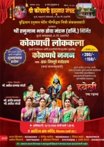 • प्रतिनिधी : रत्नागिरी : प्रमोद तरळ :- खेड तालुक्याती ल येथील श्री.कोंडवाडी हनुमान मंडळ पन्हाळजे (कोंडवा डी) ता.खेड जि.रत्नागिरी यांच्या नियोजनातून मंडळाच्या ७० व्या वर्षपूर्तीच्या निमित्ताने कोंडवाडीमध्ये स्थित अस लेल्या बुद्धिवान हनुमान मंदिर जीर्णोध्दाराचे पवित्र कार्य मंडळाने हाती घेतलेले आहे आणि या पवित्र कार्यासाठी निधी संकलन उपक्रम म्हणून सदर मंडळाच्या आयोजना तून शनिवार दि.१३ डिसेंबर २०२५ रोजी सायंकाळी ठीक ७:३० वाजता साहित्य संघ मंदिर (चर्नी रोड मुंबई) येथे आपली कोकणची लोककला म्हणजेच नमनकलेचे आयो जन करण्यात आलेलं आहे.
