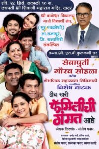 • रविवार दि. २८ डिसेंबर २०२५ रोजी सकाळी १० वाजता दादर पश्चिम येथील श्री छत्रपती शिवाजी महाराज मंदिर, दादर येथे दोन अंकी तुफान विनोदी नाटक “हीच खरी फॅ मिलीची गंम्मत आहे” चे आयोजन करण्यात आले आहे.