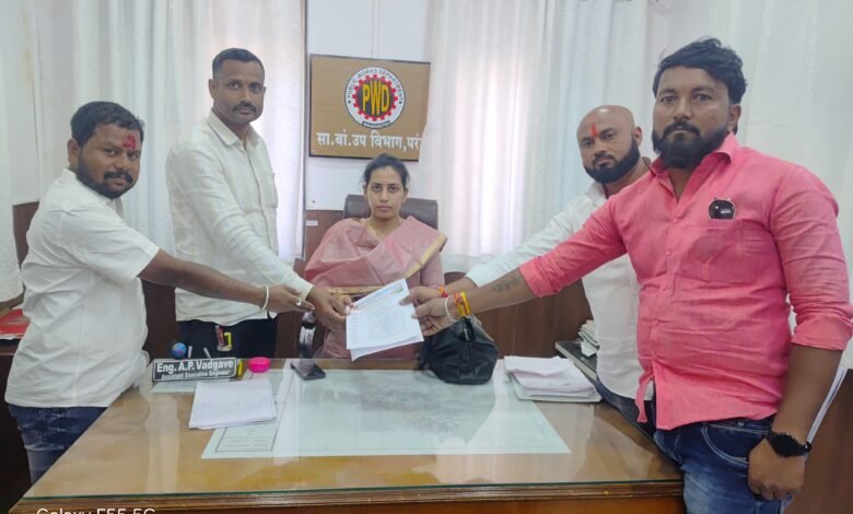 - प्रशासनाला जागे करण्यासाठी सार्वजनिक बांधकाम वि भाग परंडा येथे १ जानेवारी २०२६ रोजी हे निवेदन देण्या त आले.