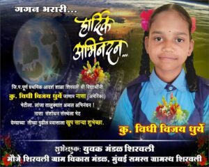 • पालकांचे उत्तम सहकार्य मिळाले विधी धुर्ये हिने मिळव लेल्या यशाबद्दल तिचे व मार्गदर्शक शिक्षक, पालक यांचे पंचक्रोशीतून तसेच युवक मंडळ शिरवली, मौजे शिरवली ग्राम विकास मंडळ मुंबई समस्त ग्रामस्थ शिरवली यांनी जाहीर अभिनंदन केले आहे.