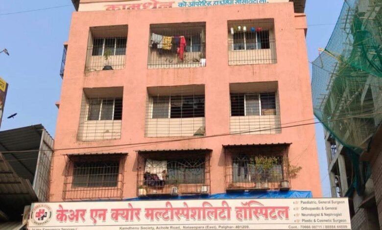 - वसई-विरार शहर महानगरपालिकेच्या वैद्यकीय आरोग्य विभागाला मिळालेल्या माहितीनुसार “केअर ॲन्ड क्युअर मल्टीस्पेशालिटी हॉस्पिटल, १०१-१०६, कामधेनू सी.एच .एस लि, पहिला मजला, एसबीआय बँकेसमोर, आचोळे रोड, नालासोपारा (पुर्व) येथे अवैधरित्या गर्भपात करीत असल्याची माहिती कार्यालयात प्राप्त झाली होती.