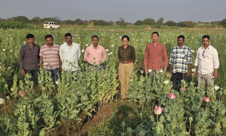 • त्यांच्या मार्गदर्शनाखाली सहाय्यक पोलीस निरीक्षक सुद र्शन कासार व पथकाने संबंधित ठिकाणी भेट देऊन खा त्री केली असता, कांद्याच्या पिकामध्ये मोठ्या प्रमाणात पांढऱ्या-गुलाबी फुलांची व मोठ्या बोंडांची अफूची झाडे आढळून आली.