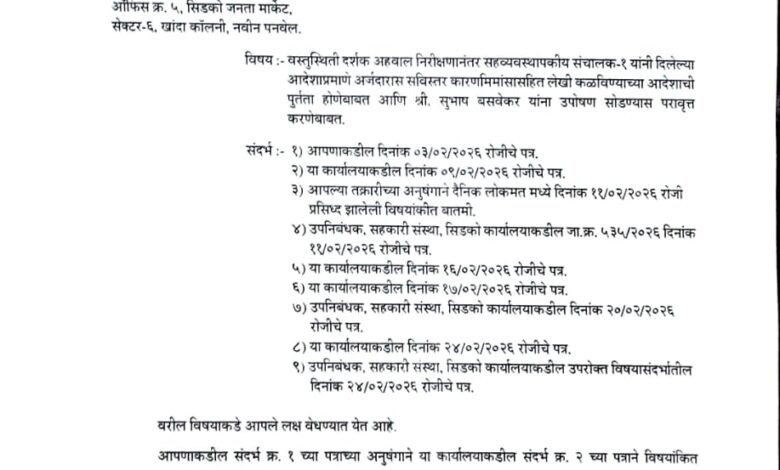 - प्रतिनिधी : नितीन राणे :- साखळी उपोषण आणि धर णे आंदोलन थांबले….!सहनिबंधक सहकार(सिडको) नवी मुंबई यांचे पत्र लेखी मिळाले.