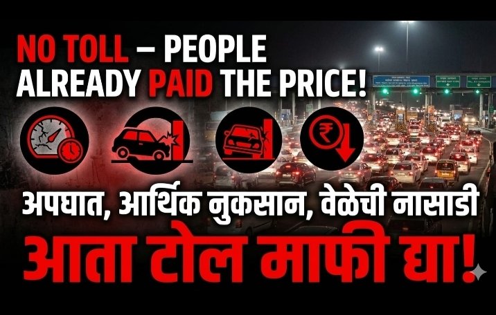 - जनतेने एवढा मोठा त्रास सहन करूनही आता पुन्हा टोल च्या नावाखाली पैसे उकळले जाणे हे अजिबात मान्य होणार नाही.