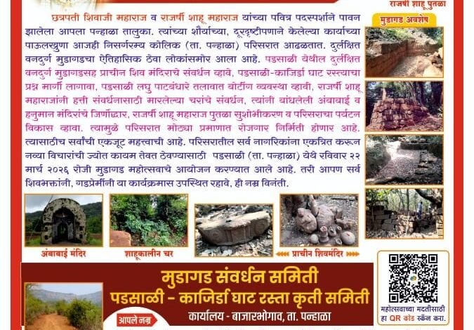 ऐतिहासिक वारसा जपण्यासाठी पन्हाळा तालुक्यातील पडसाळी येथे २२ मार्चला मुडागड महोत्सवाचे आयोजन.