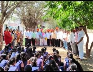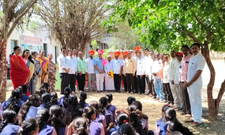 - विद्यालयाचे मुख्याध्यापक बाळासाहेब काशीद यांच्या ह स्ते हार, फेटा आणि पुष्पगुच्छ देऊन मान्यवरांना सन्मानि त करण्यात आले.