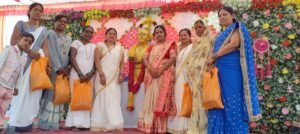 - तसेच, निराधार महिलांना साड्यांचे वाटप करण्यात आले. इमारत व इतर बांधकाम कामगार कल्याणकारी मंडळा च्या वतीने कामगारांना घरगुती भांडी संचाचे वाटप कर ण्यात आले.