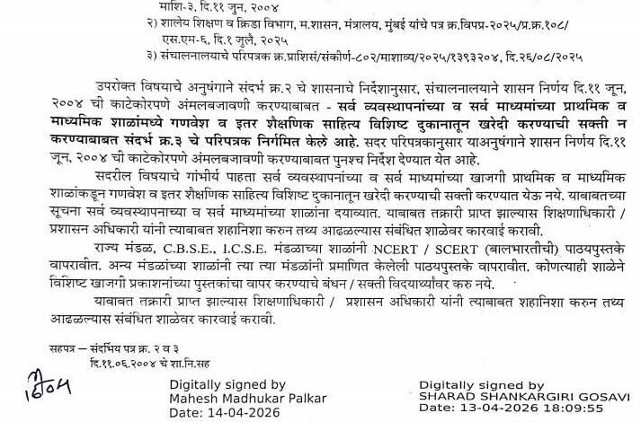 - त्यानुसार प्राथमिक संचालक शरद गोसावी व माध्यमिक संचालक महेश पालकर यांनी राज्यातील शाळांना थेट पत्राद्वारे आदेश दिला आहे.