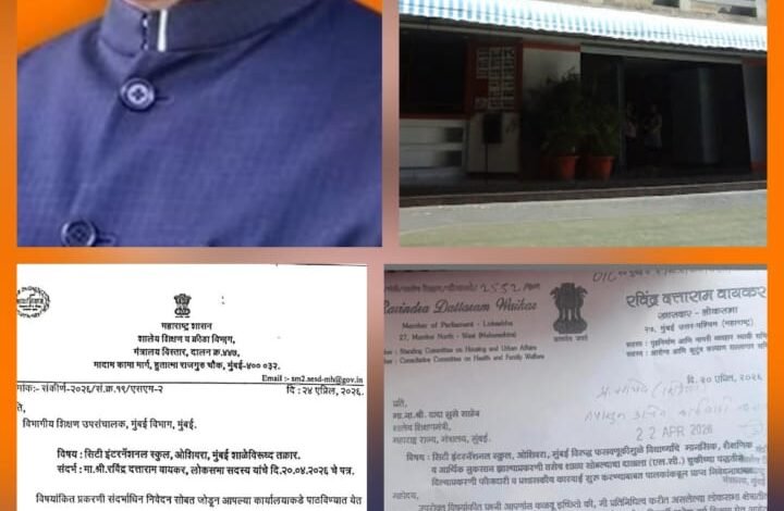 सिटी इंटरनॅशनल स्कूल अचानक बंद करण्याचा शाळा प्रशासनाचा निर्णय,फौजदारी व प्रशासकीय कारवाई करा-खासदार रविंद्र वायकर यांची शालेय शिक्षण मंत्री दादा भुसे यांच्याकडे पत्राद्वारे मागणी.