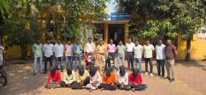 • अशी माहिती मिळाल्याने लागलीच पोनि विनोद इज्जपवा र यांचे मार्गदर्शनात सपोनि खटके, सपोनि मोरे यांचे पथ कासह सुयोग्य नियोजन करून आरोपी थांबलेल्या ठिका णी सर्व बाजुने त्यांना घेरून पकडत असताना त्यातील काही जग शेतात पळून जात असतांना त्या सर्वांना पाठ लाग करून शिताफीने पकडून ताब्यात घेवून सर्वांना त्यां चे नाव गाव वावत विचारले.