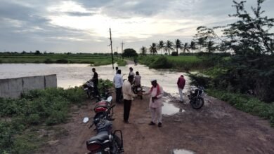 डोणगाव ओढ्याला पुर-स्मशानभूमी पाण्यात, पाणी रोडवर आले.